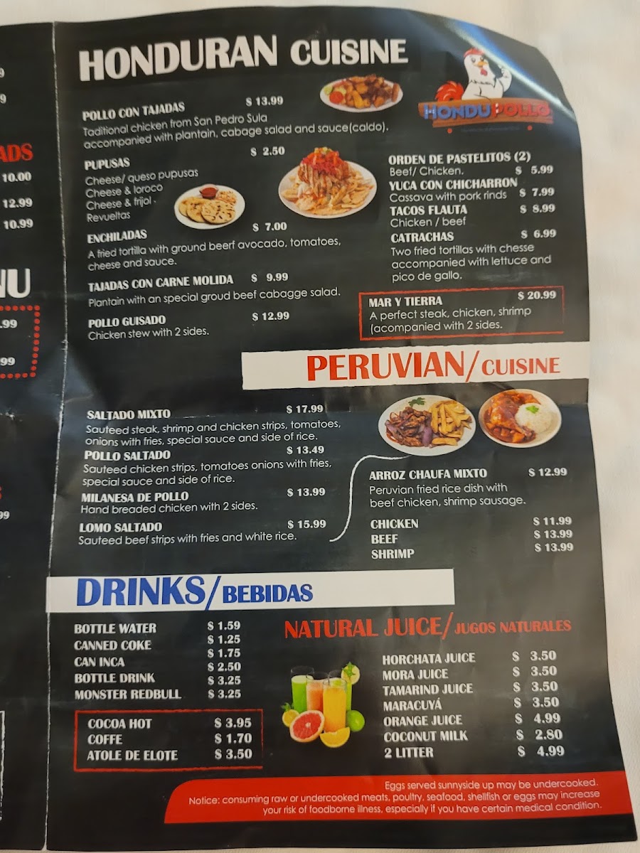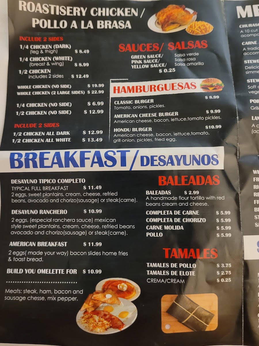 The menu pairs well with the welcoming atmosphere, making it easy to settle in and savor each bite at your own pace. Whether you’re stopping by for a comforting breakfast or a casual dinner, the dishes are designed to resonate with both daily cravings and those special moments when food feels like a simple pleasure. Offering a fresh take on traditional flavors, HonduPollo’s menu fosters a relaxed setting where the focus is on the enjoyment of honest, well-prepared food.
