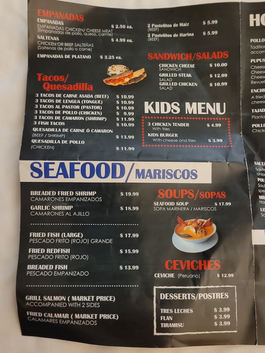 You’ll find a variety of options that combine fresh ingredients with homestyle preparations—dishes like pollo con tajadas and lomo saltado balance rich, savory flavors with approachable presentations. Finger-friendly bites such as yucca fries with chicharron or the ever-popular pupusas make for enjoyable shared plates, ideal for moments spent with family or friends. Meanwhile, more substantial entrées featuring seafood or mixed grill platters offer a fulfilling meal for those seeking a little more indulgence without losing that homemade feel.